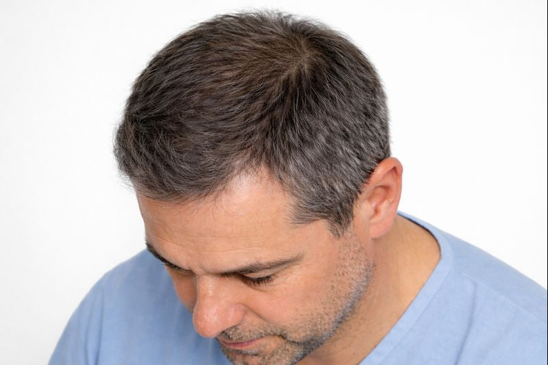 Unsere Formel zeigt messbare Verbesserungen: Weniger Haarausfall, verdichtete Geheimratsecken, volleres Haar am Oberkopf. Echte Transformationen von echten Kunden.